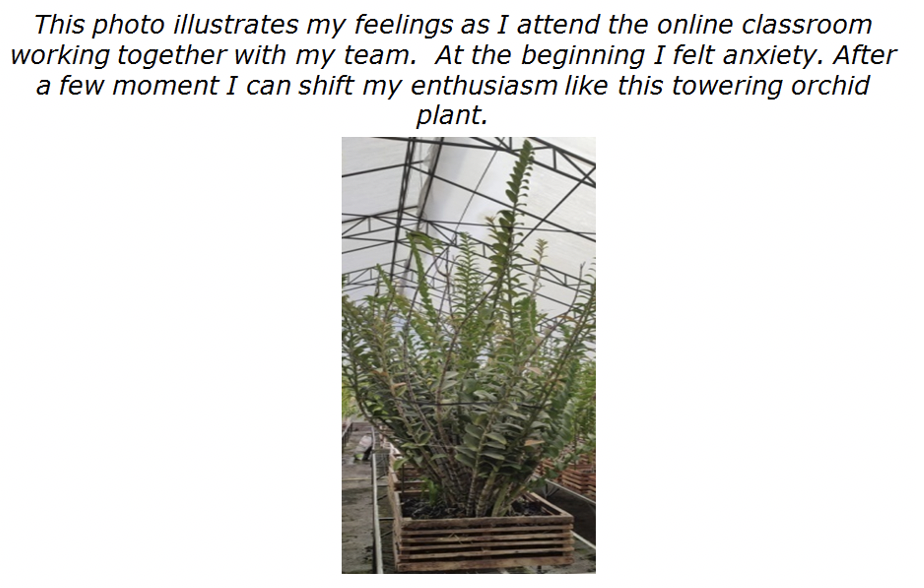 The photovoice expressed Yulia’s enthusiasm in OCLP by showing beautiful blossoming frangipani flower that represented her happiness and excitement. It means that the blossoming flower needs a process as said by Yulia in her statement: “no need to rush to love the material because if we want to love it, we need time”. This statement indicates that she needed more time to gradually understand the material in the online classroom setting. At the same time, Yulia was worried about the task they had to accomplish with her team. She also felt sad and confused in doing the task. However, the beautiful blossoming flower inspired them to arouse their motivation and enthusiasm.