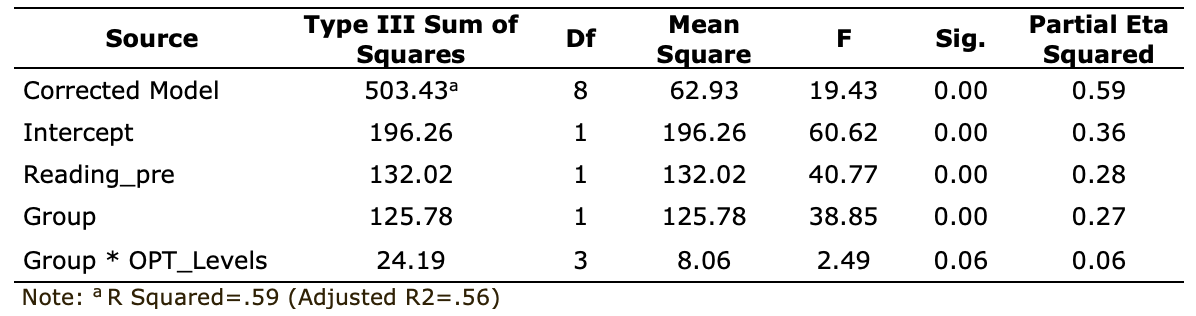 Table 5: Tests of between-subjects’ effects on Post-Reading Comprehension Test